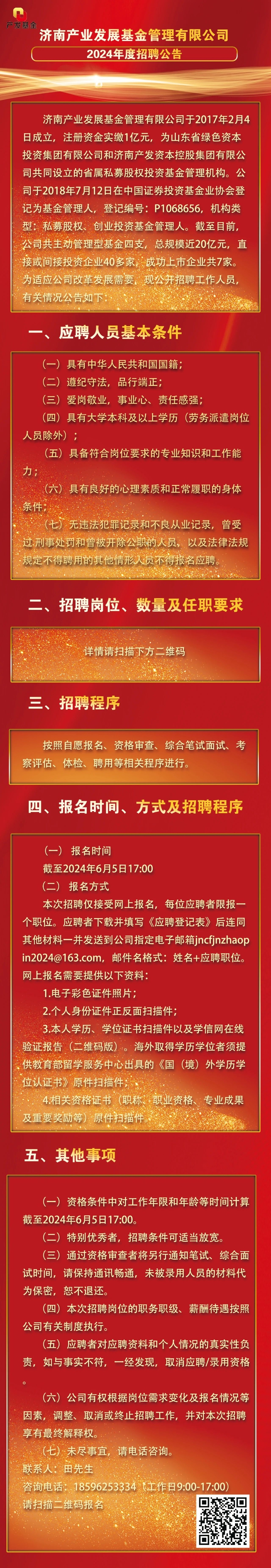 发布单位: 济南产业发展基金管理有限公司 单位性质:国有企业 所属分类:国企